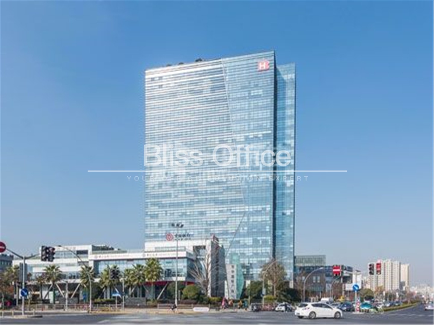該項目總建築麵積為56467.9平方米,由一棟25層辦公樓和6棟2~3層小辦公樓組成。項目利用高差的設計和各建築之間的空隙,將下沉庭院與南側的城市綠化及大寧綠地連為一體,打造出安靜怡人的辦公環境。